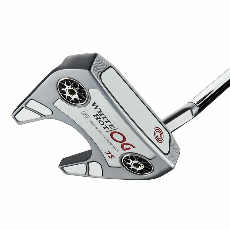 | Odyssey White Hot OG Stroke Lab #7S Golf Putter Legendary Insert With Innovative New Shaft Legendary then, iconic now, the popular White Hot insert is back in the new White Hot OG Putters. The most popular putter insert of all time is back in the exact original formulation, original feel, original sound and original performance. Tour professionals and recreational golfers alike have been asking Odyssey to reintroduce it for years and Odyssey have listened. The putters come in a rich silver PVD finish, combined with milling on the surfaces to give the putters a ultra-premium look verses previous versions of White Hot. These putters are beautiful and will appeal to golfers who prefer the look of a milled putter. Featuring Stroke Lab Technology that helps golfers improve their putting stroke, including back swing length, face angle at impact, head speed through impact and tempo, all through a profound change in weight distribution made possible by an innovative new shaft. The Stroke Lab shaft is a full 40 grams lighter than a traditional steel putter shaft, made possible by an innovative new multi-material shaft design that combines graphite with steel to weigh just 75g. Odyssey have also redistributed that saved weight by adding 10g to the head in the form of two sole weights, and adding 30g to the grip-end via a 10g-lighter grip and 40g end-weight. White Hot OG putters are targeted at any golfer who wants to putt better (that’s everyone). The line-up consists of 8 great shapes – 6 mallets and 2 blades and come in a choice of pistol grip or oversize grip. |