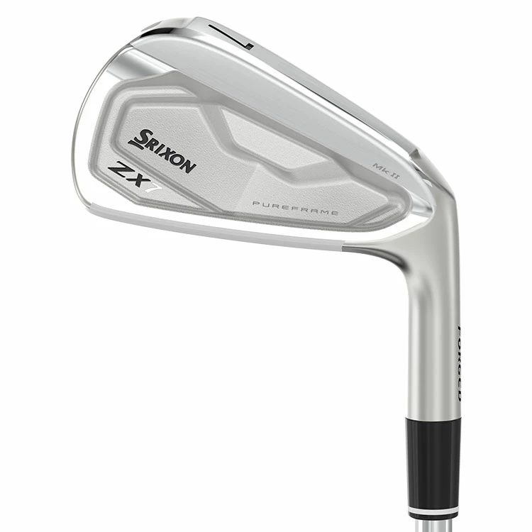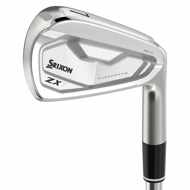 | Srixon ZX7 Mk II Golf Irons Fast And Pure With Players Workability The Srixon ZX7 Mk II Golf Irons are A players iron with tour-preferred looks and the pure feel of a premium blade, offering total control. Featuring a compact shape, narrow topline, single-piece forging, and narrow sole. Designed with PureFrame, forged into ZX7 Mk II as an 80% thicker portion of 1020 CarbonSteel, PureFrame is strategically placed right where you strike the ball, delivering an enhanced impact feel for pro-level performance. The 3i-7i feature wide grooves, ideal for longer shots in all conditions. The 8i-AW have deeper, clos er set grooves which cut through grass and debris to enhance spin on approach shots. Laser milling between each groove, on every loft, enhances friction in all conditions. Tour V.T. Sole takes turf interaction to a whole new level of detail with a proprietary combination of sole widths, bounce angles, and notches that encourages a smooth glide through fairway, rough and sand to strike the ball solidly without losing speed. Fitted as standard with the N.S. PRO Modus3 Tour shafts and the Golf Pride Tour Velvet 360 grips. |